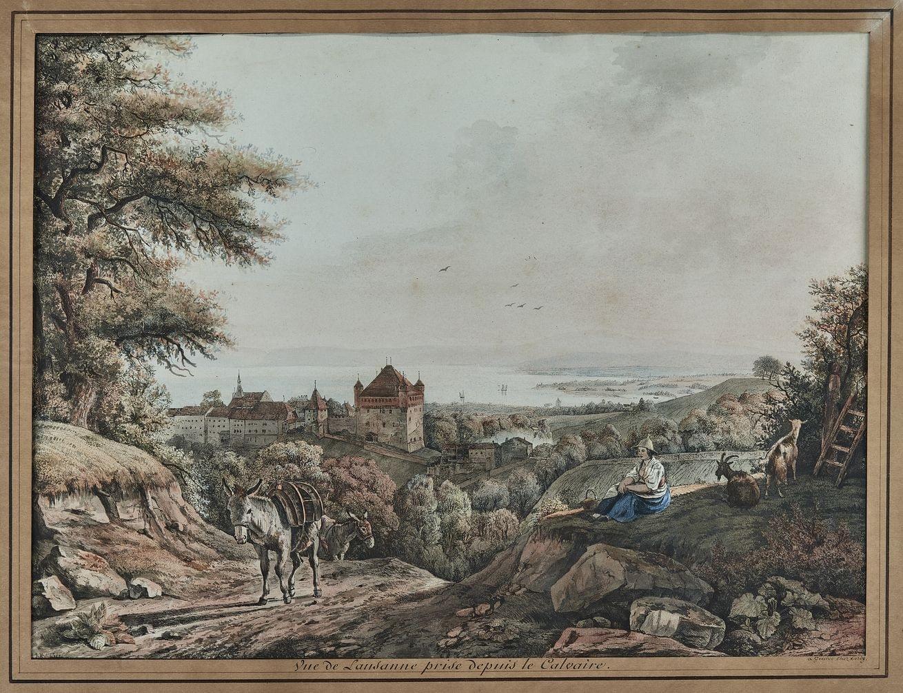 Vue de Lausanne prise depuis Calvaire, gravure, 43x57 cm