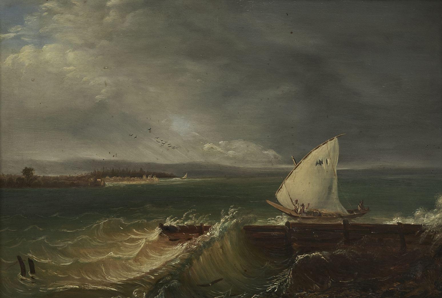 Barque sur le Léman, huile sur toile, 31x46 cm