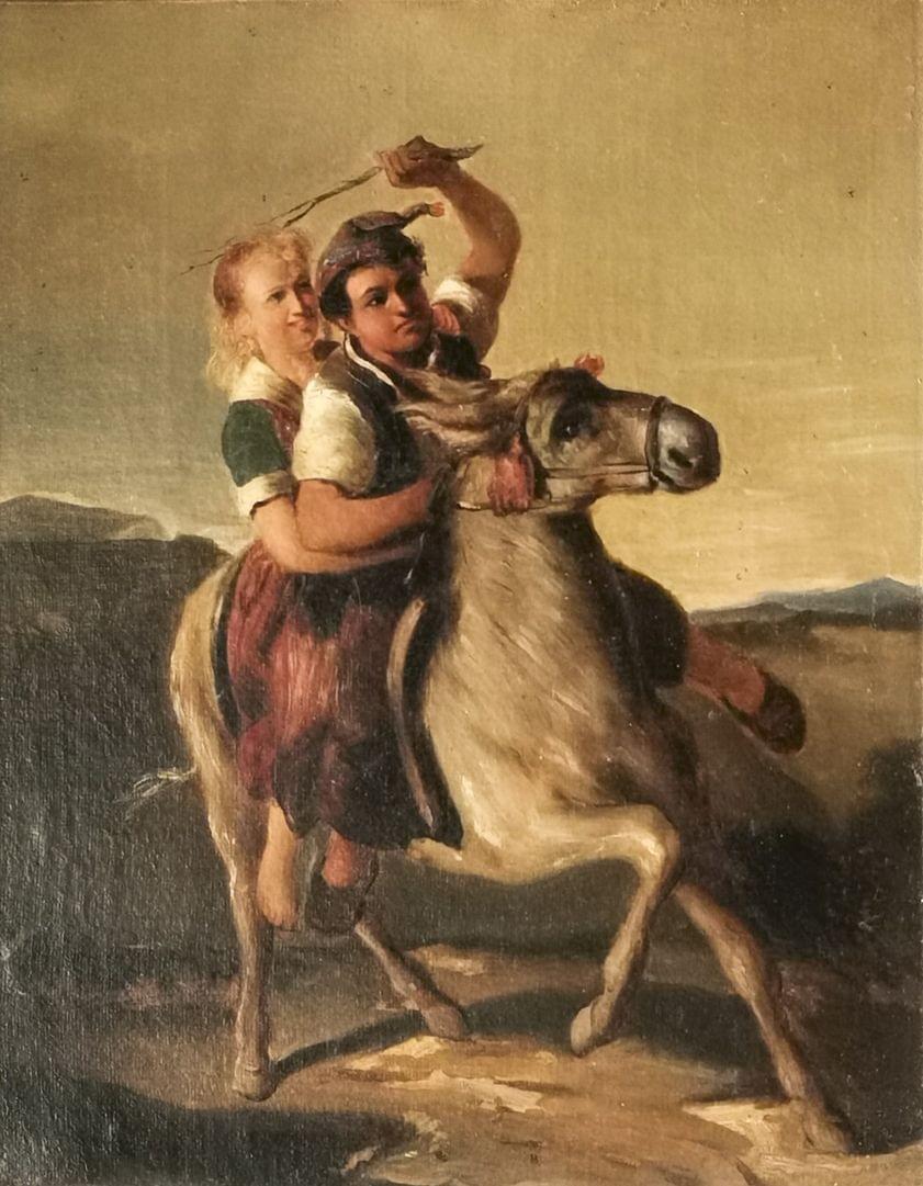 Deux enfants sur un âne, huile sur toile, 27x22 cm