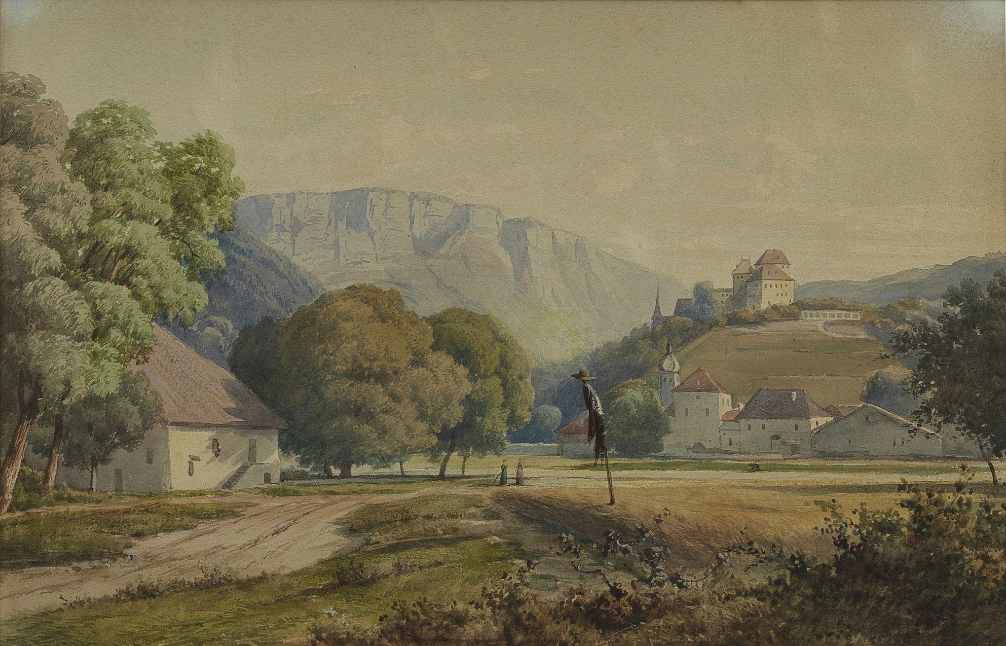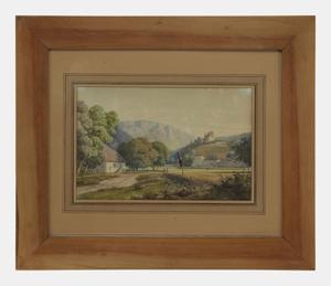 Paysage avec épouvantail, aquarelle et gouache sur papier, 18x28 cm