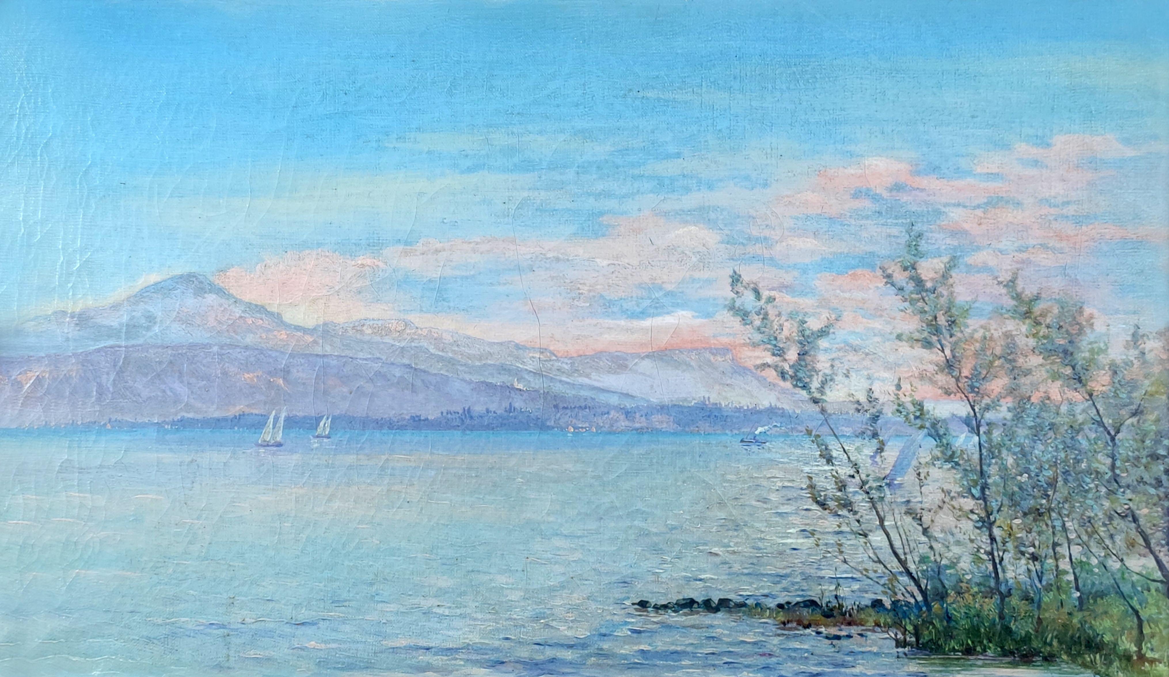 Vue du lac Léman, huile sur toile, 32x55 cm