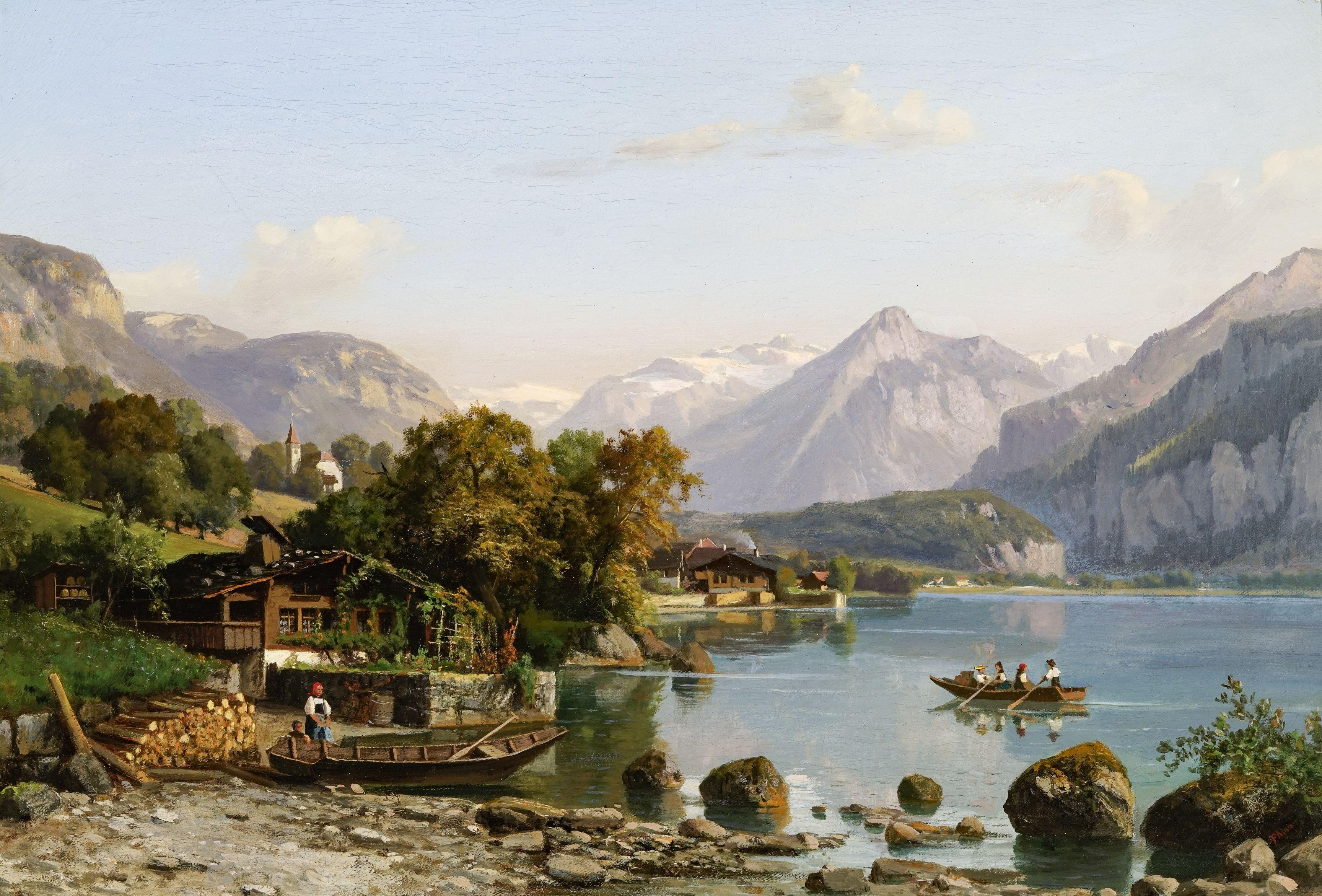 Vue du lac de Brienz, huile sur toile datée 1861, 58x84cm