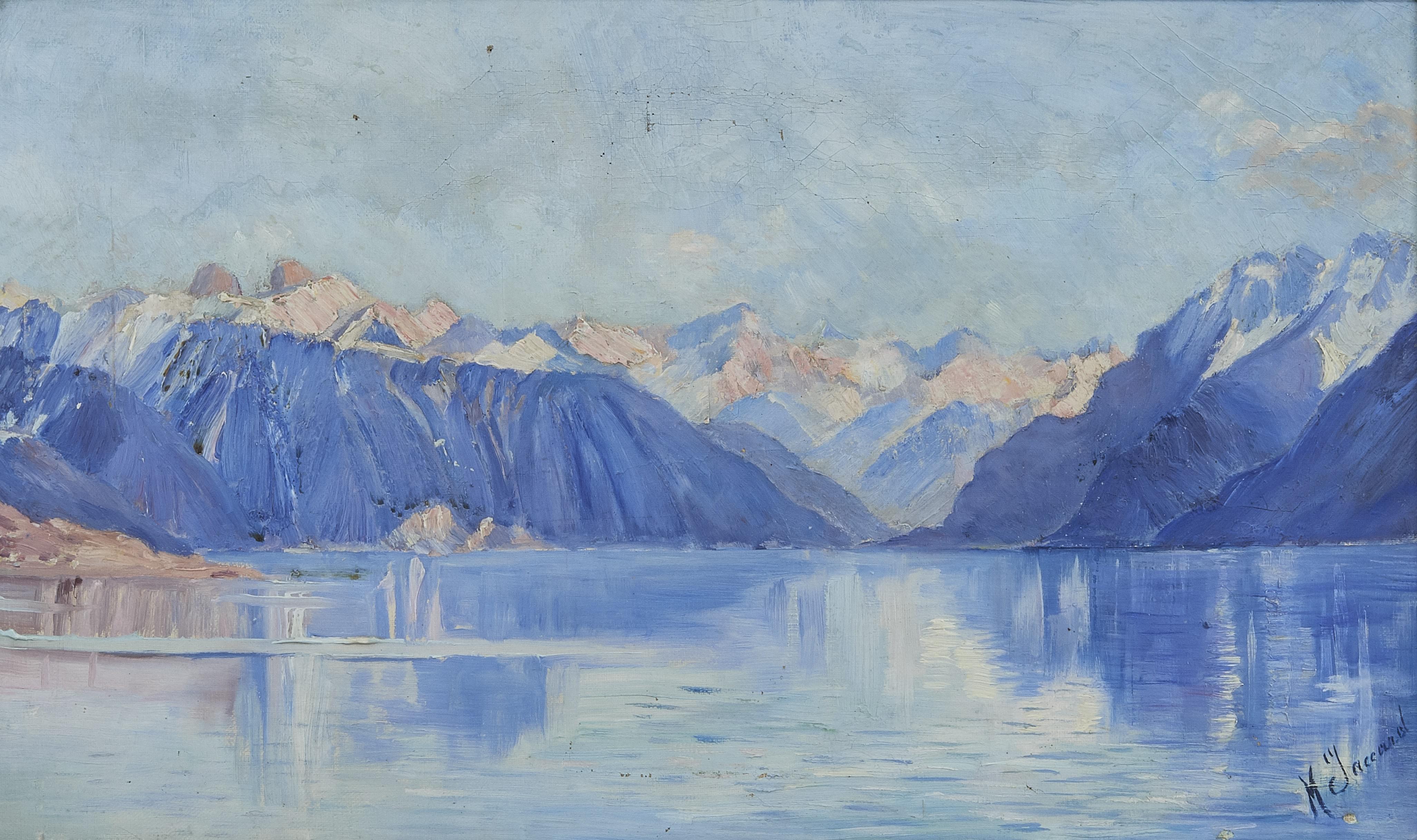 Lac et montagnes, huile sur toile, signée M. Jaccard , 33x45 cm