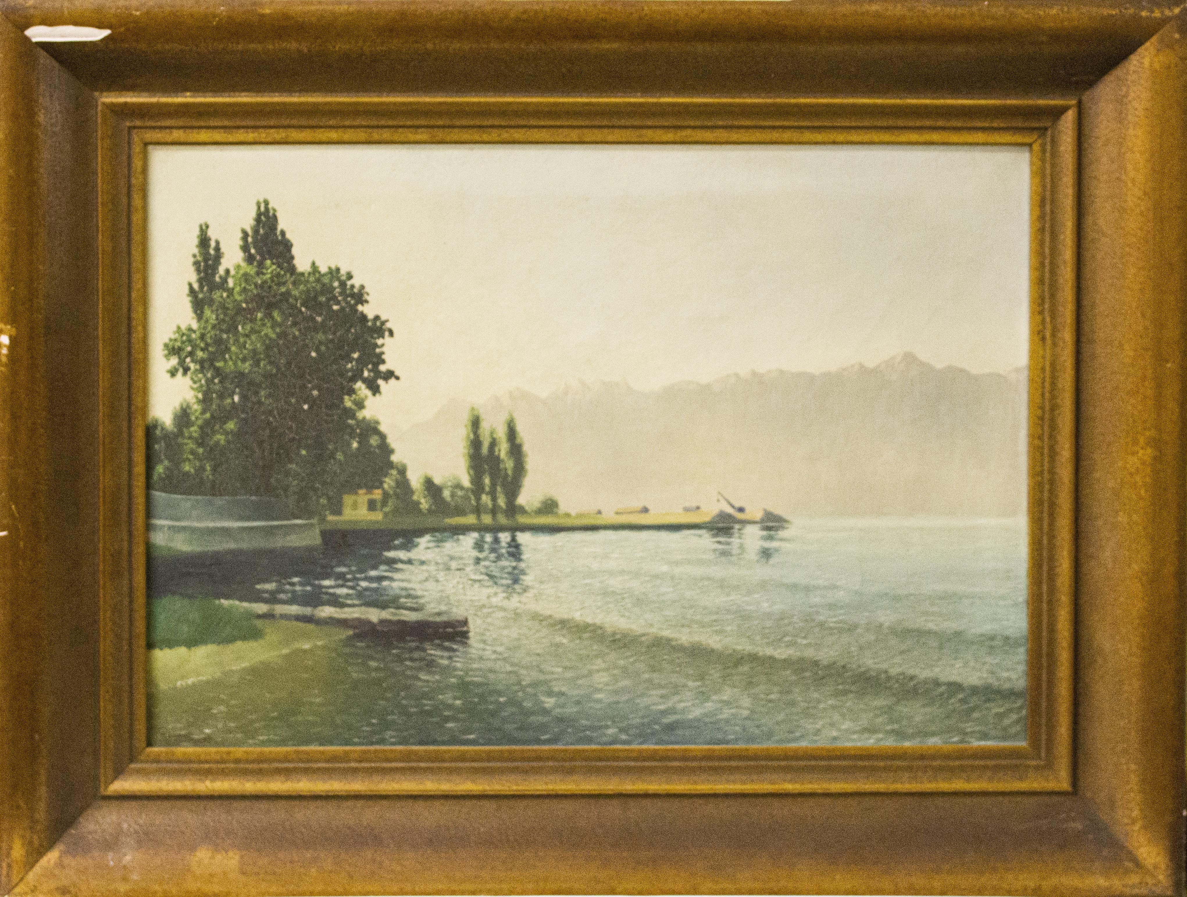 Vue d'un lac de montagne, huile sur toile, signée M. Guignet et datée 1931, 37x55 cm