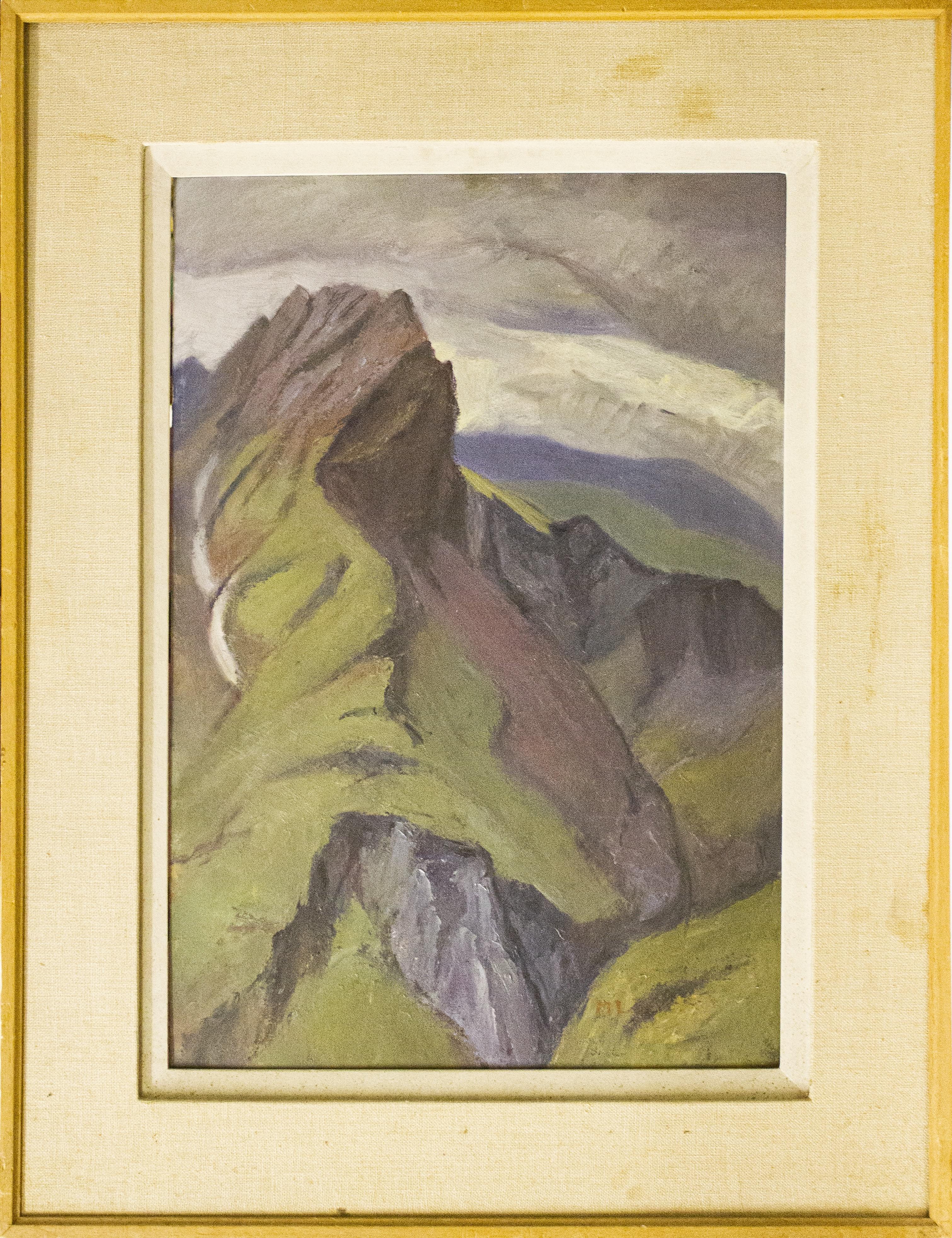 Vue d'une montagne et étude de nu au dos, huile sur carton, signature illisible, 53x36 cm
