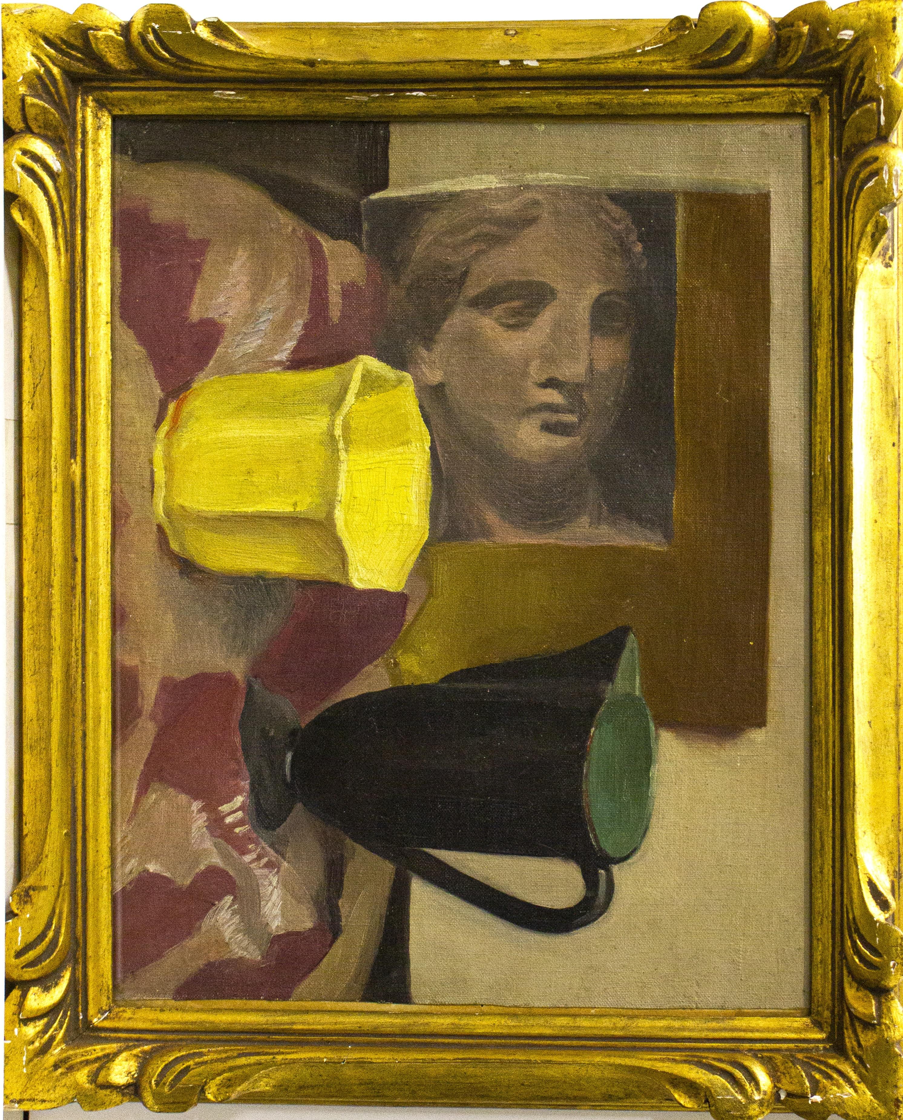 Cuivre et émaux polychromes sur fond rose, H 56 cm