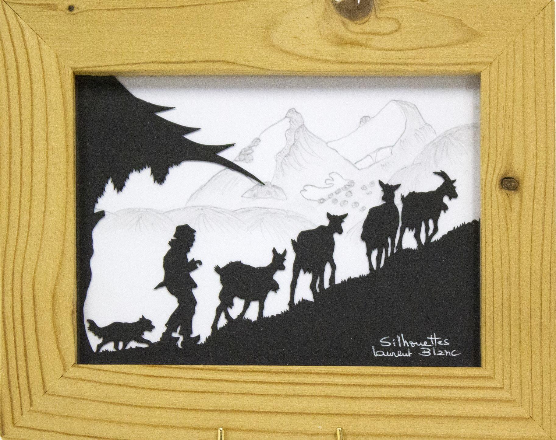 Le gardien de chèvres, découpage, signé Laurent Blanc, 11,5x16,5 cm