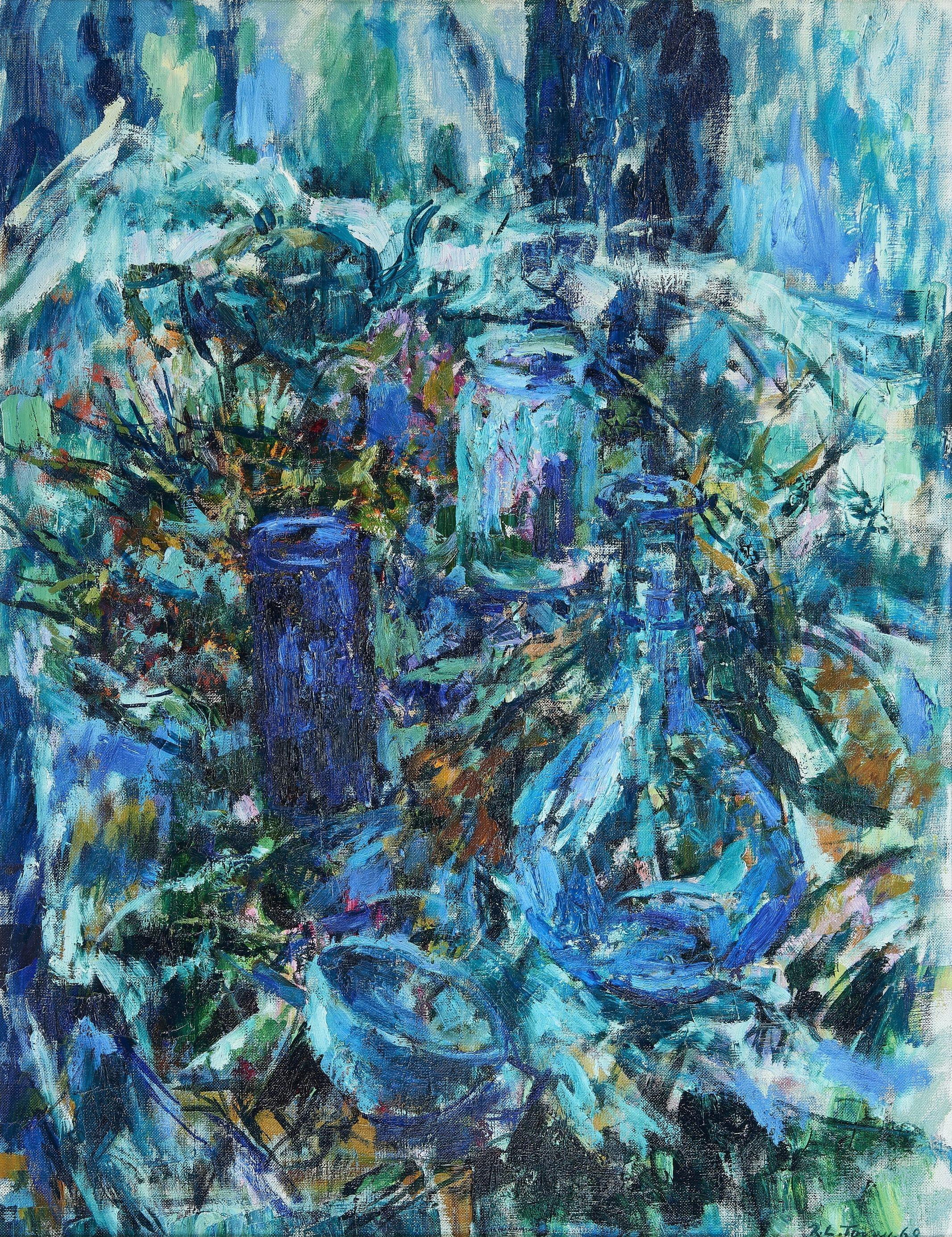 Nature morte, huile sur toile, signée R.Trovey à Carouge, 65x50 cm