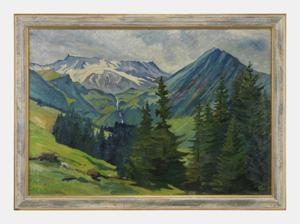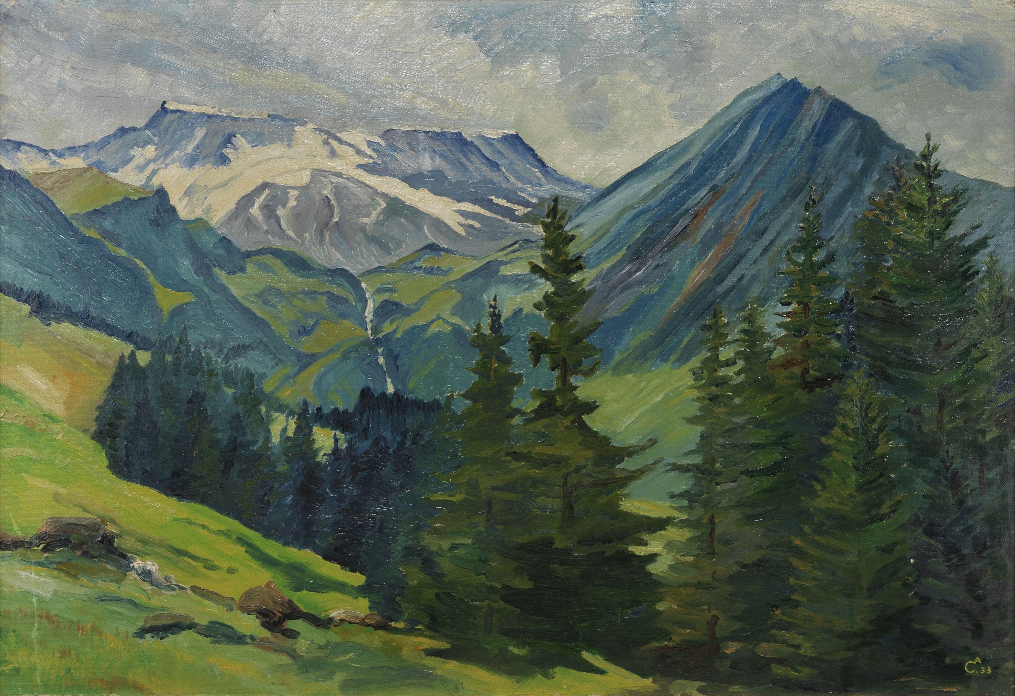 Paysage de montagne, huile sur toile marouflée sur carton, monogrammée CA et datée 33, 50,5x72,5 cm