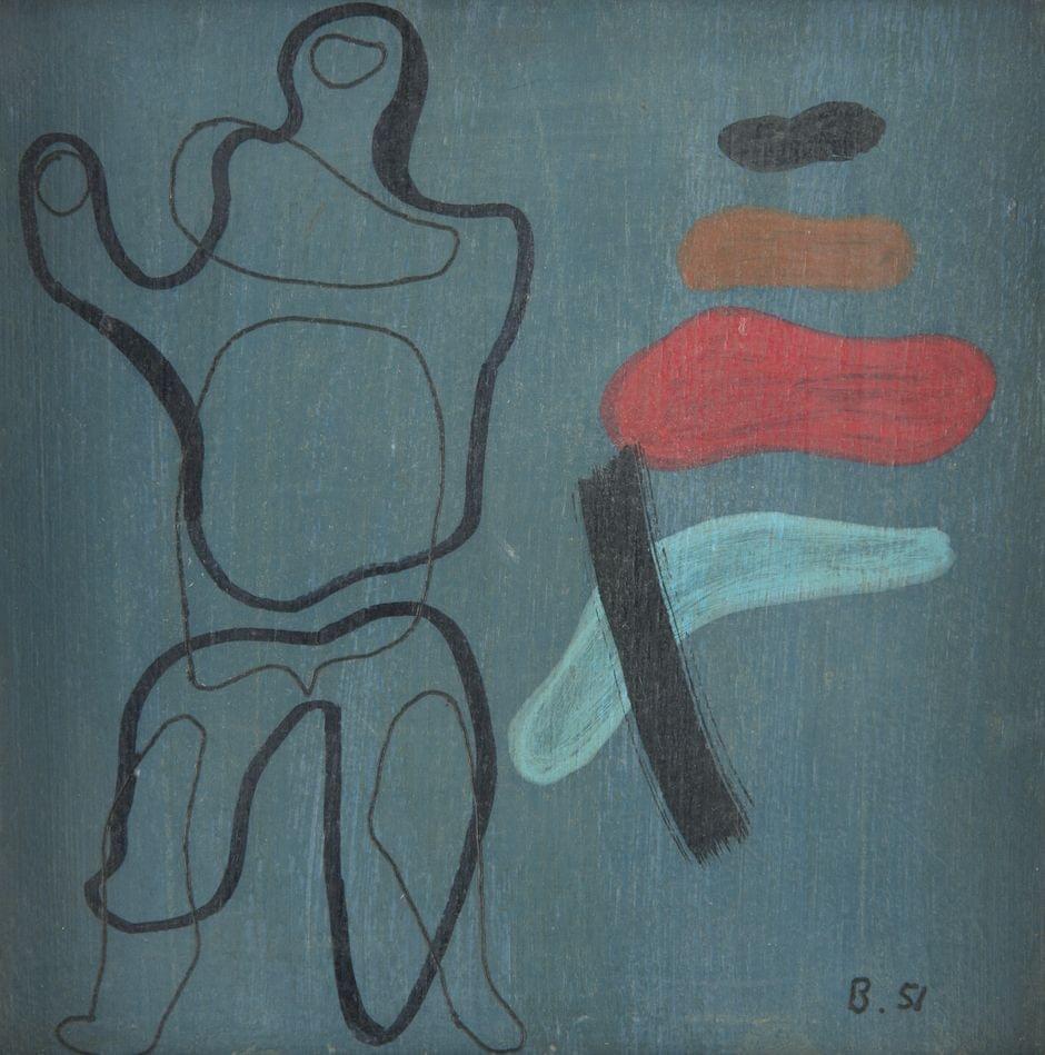 Composition abstraite, huile sur carton, monogrammée B et datée 51, 15x15 cm