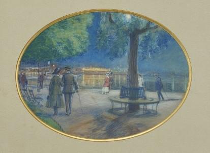 Le jardin anglais à la Belle Epoque, pastel et gouache sur papie...