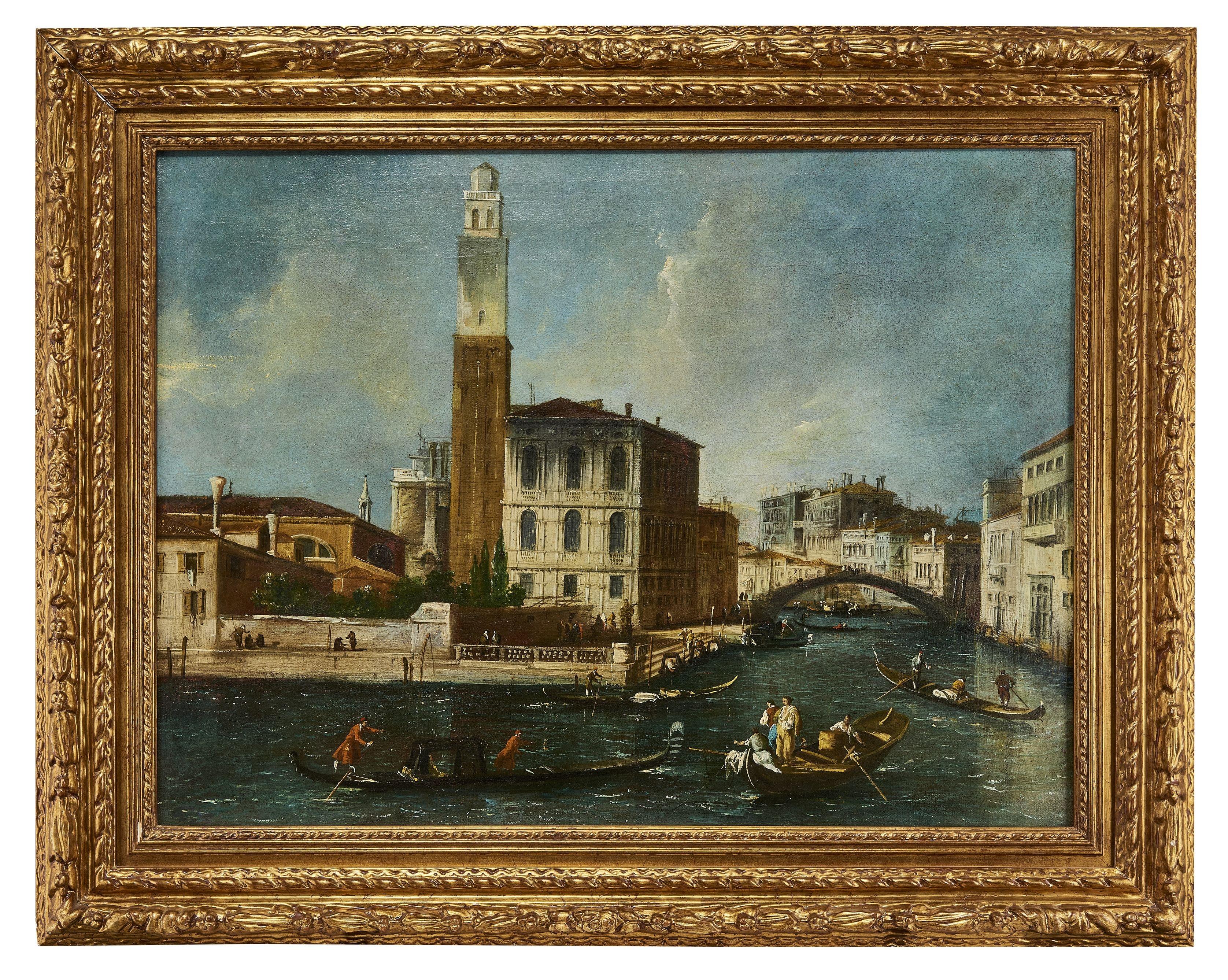 Vue du canal de Cannaregio avec le Palais Labia, Venise, huile sur toile, 68x93 cm. D'après la composition originale de Canaletto conservée dans les collections de Sa Majesté la Reine d'Angleterre au château de Windsor. Provenance: Artcurial, vente du 13 mai 2011, lot 136