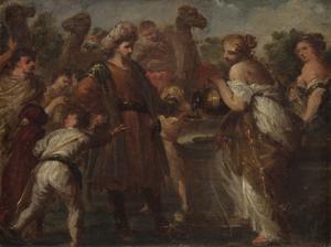 Eliezer de Damas et Rebecca au puits, huile sur toile, 27x35 cm
