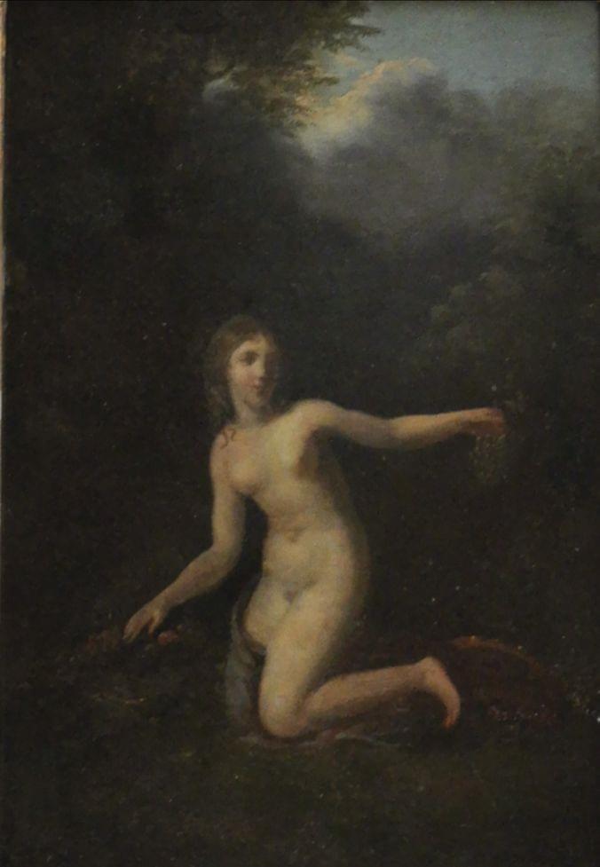 Femme à la grappe de raison, huile sur panneau, 22x16 cm