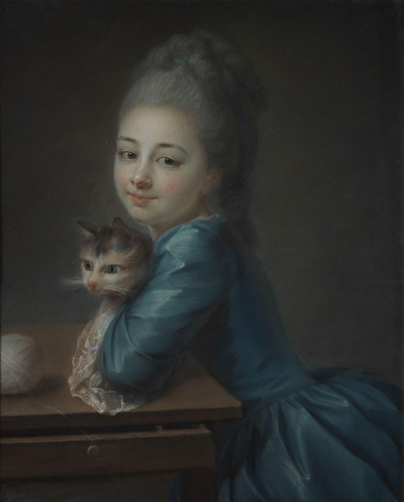 Jeune fille au chat, pastel sur papier, 55x44 cm