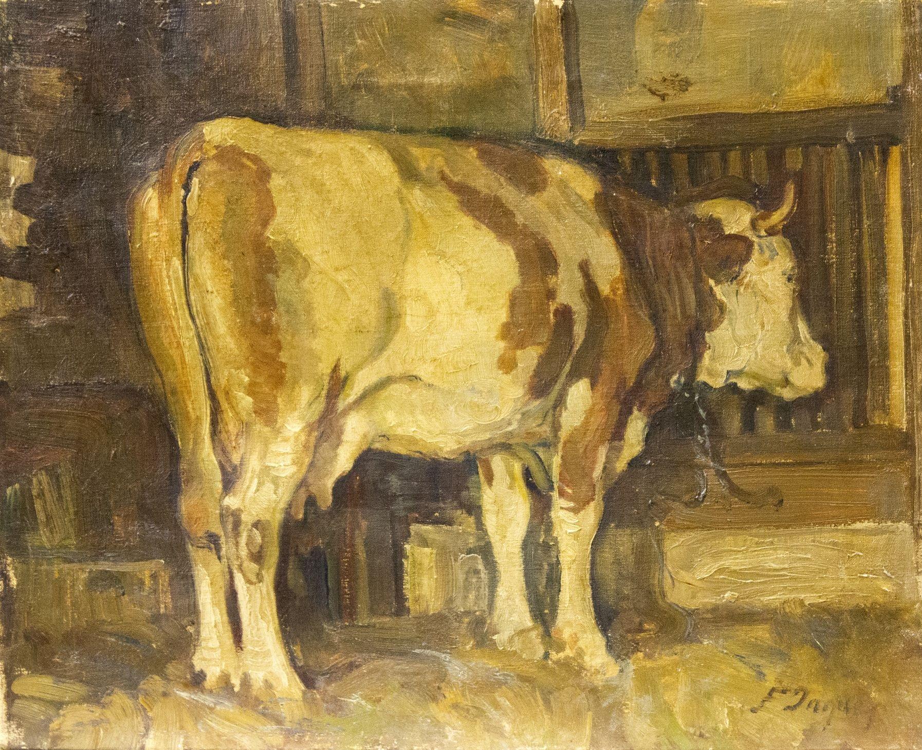 Vache dans l'étable, huile sur toile, signée F.Jaques, 38x47 cm