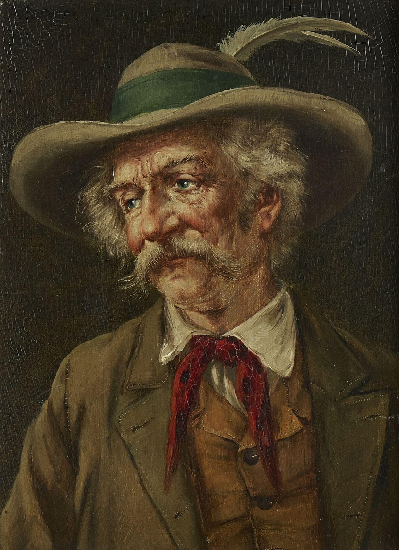 Portrait de vieil homme avec un chapeau à plume, huile sur panneau, 21x16 cm