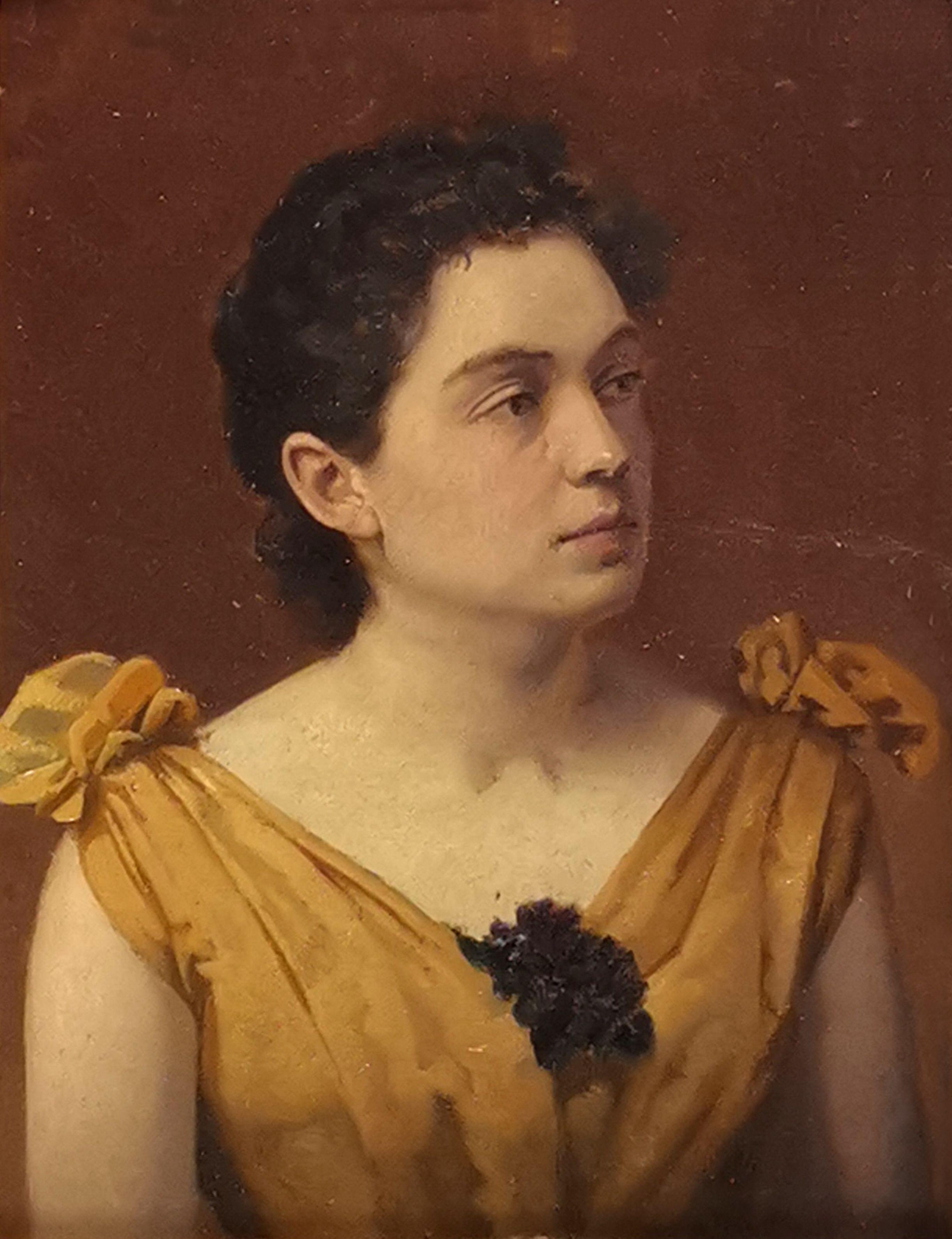Portrait de dame à l'antique, huile sur panneau, 23x19 cm