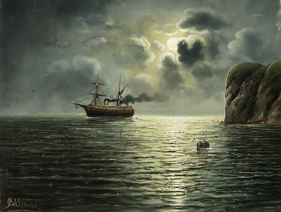 Vapeur au clair de lune, huile sur toile, signature non identifiée, 54x72 cm