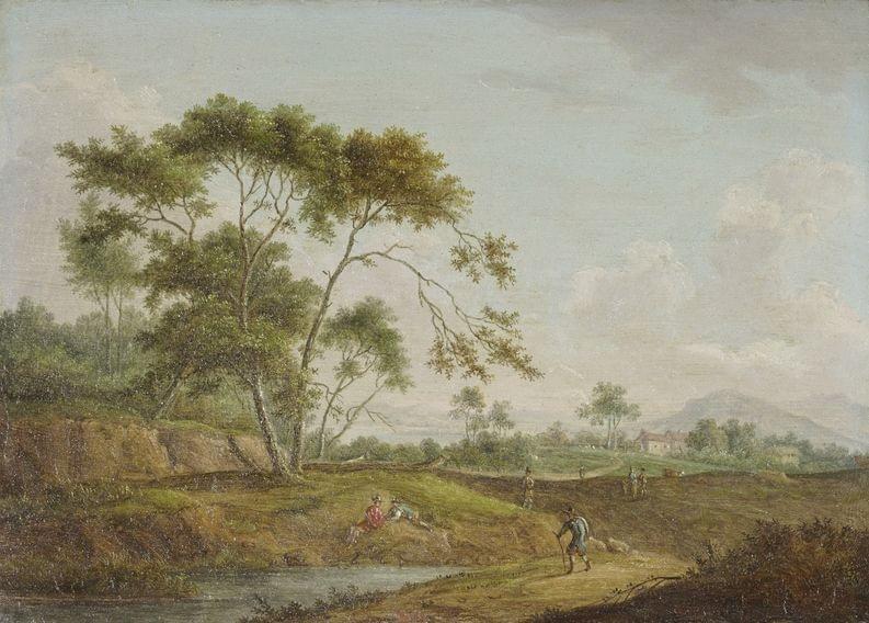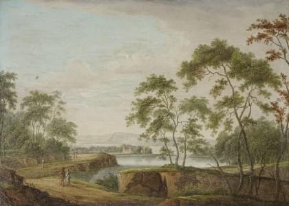 Vue sur le lac, dans les environs de Lausanne, paire d'huiles sur cuivre, 12,5x17,5 cm