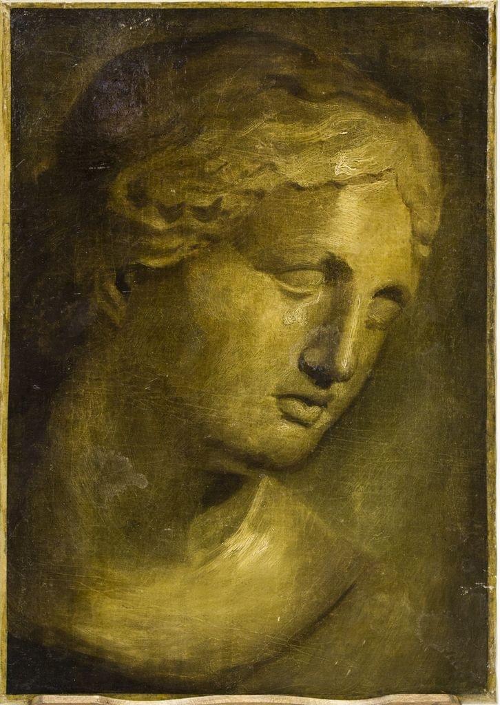 Buste de femme à l'antique, huile sur toile, 24,5x35 cm