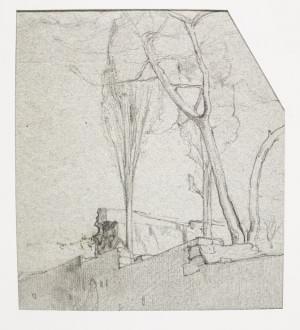 Ensemble de sept dessins de paysages, fusains, mine de plomb et lavis d'encre, de 7x10 cm à 15x25 cm