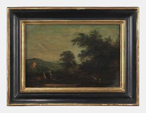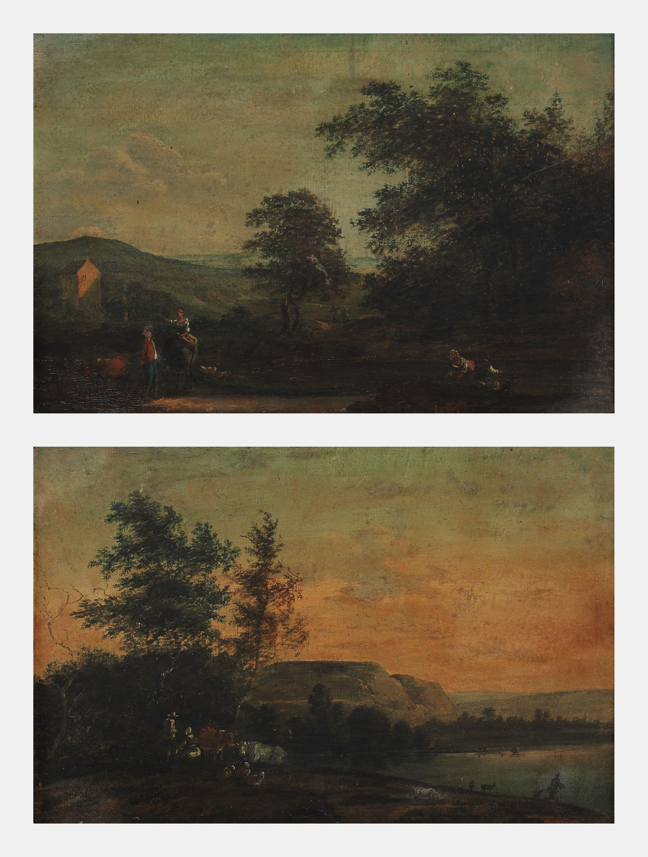 Paysages animés, paire d'huiles sur panneaux, 21x31 cm