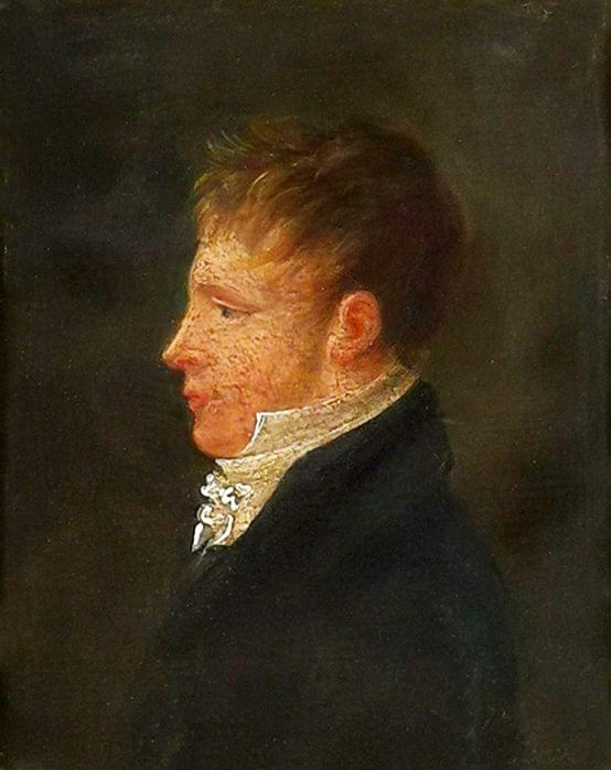 Portrait de Louis Alfred Sallard (1802-1827), peint par Constantin, huile sur papier 10,5x8 cm