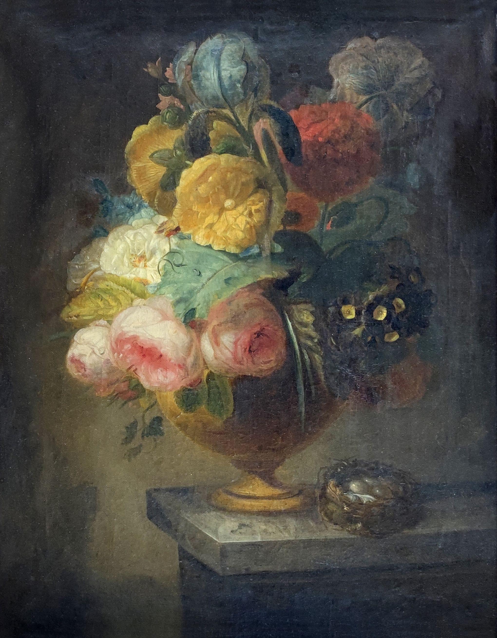 Bouquet de fleurs sur un entablement, huile sur toile, 57x44cm
