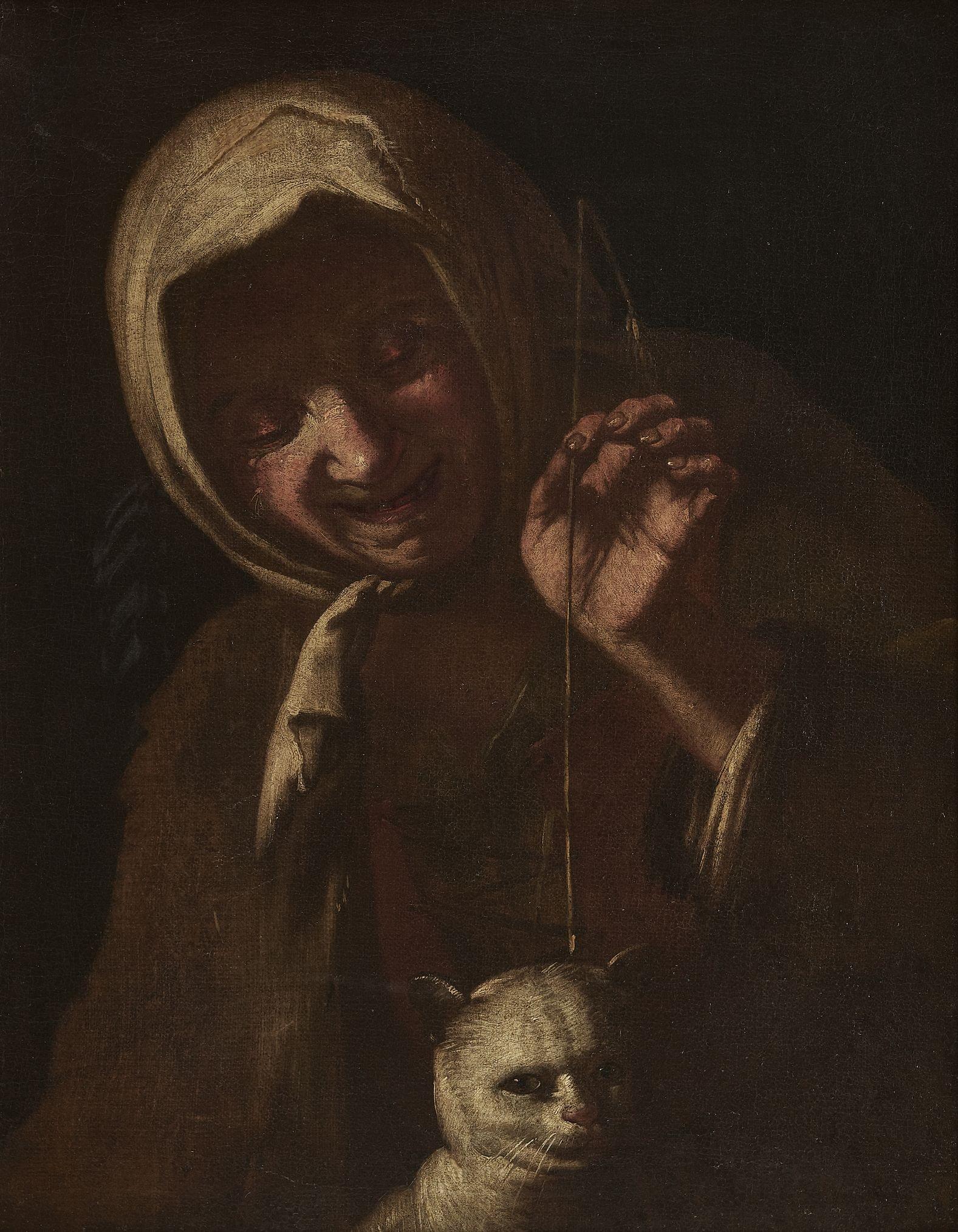 Portrait de vieille dame avec un chat, huile sur toile, 60x48 cm