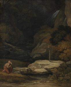 Saint Jérôme agenouillé devant la Croix, huile sur toile, porte une signature A. Böcklin, 45x37 cm