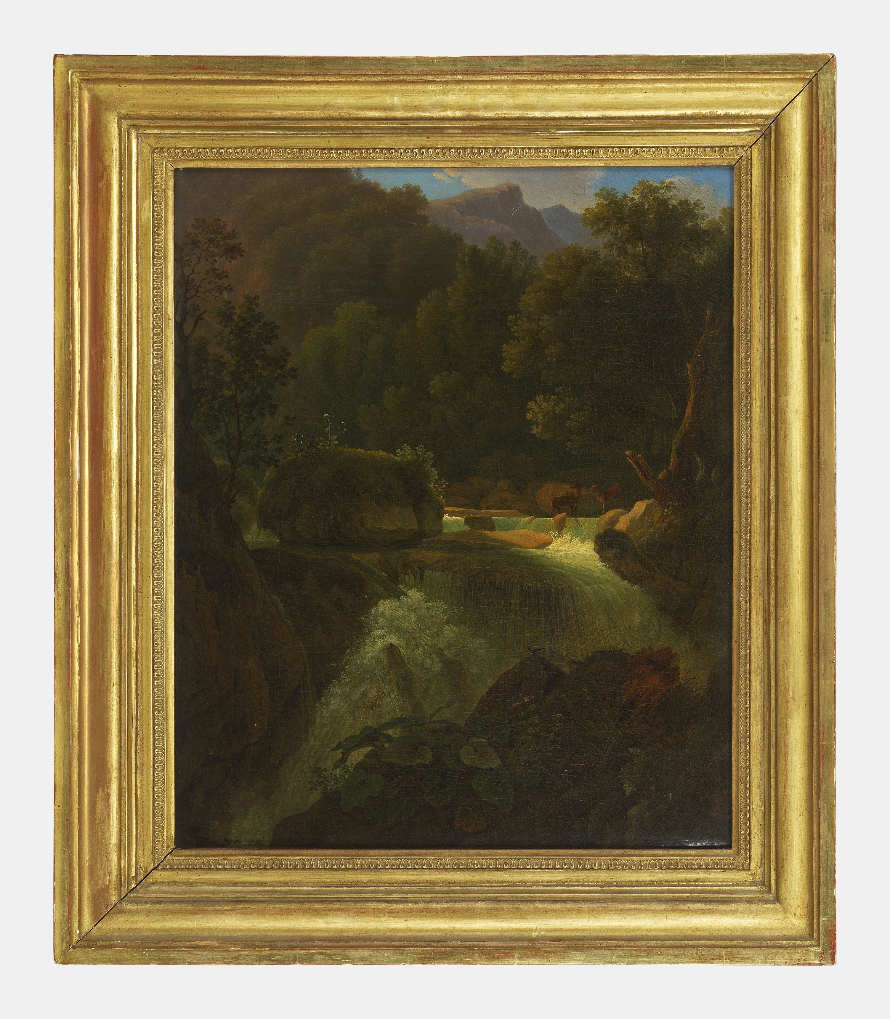 Le torrent dans la vallée, huile sur toile, traces de signature, 56x46 cm