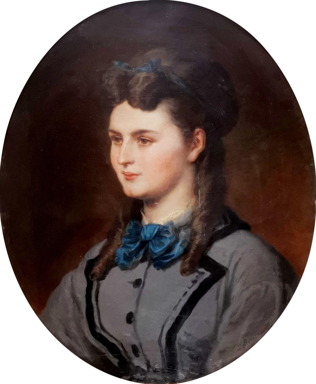 Portrait de jeune femme, huile sur toile ovale, 61x50 cm
