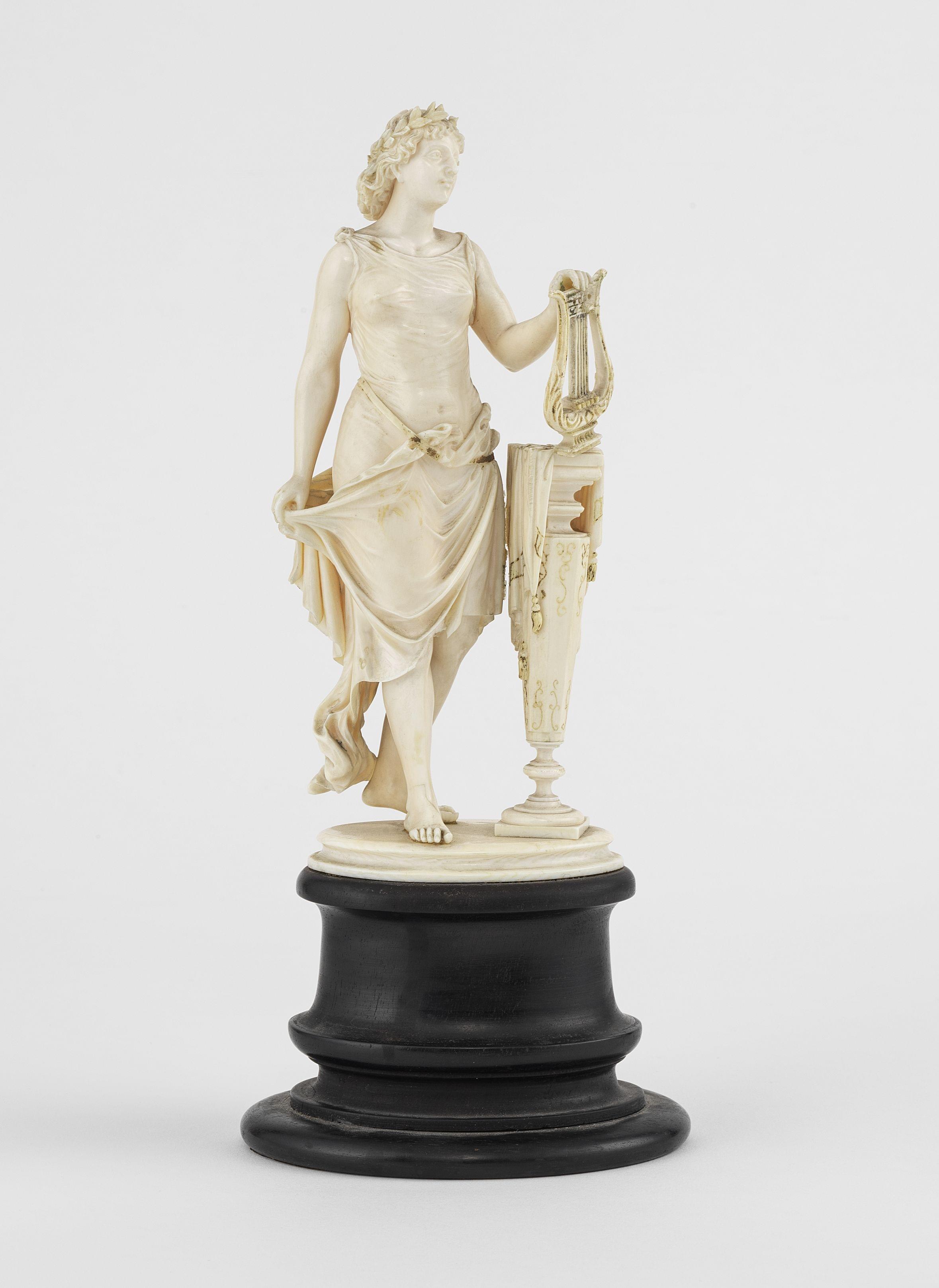 Portrait d'une jeune femme à la tiare, miniature sur ivoire, 9x7...