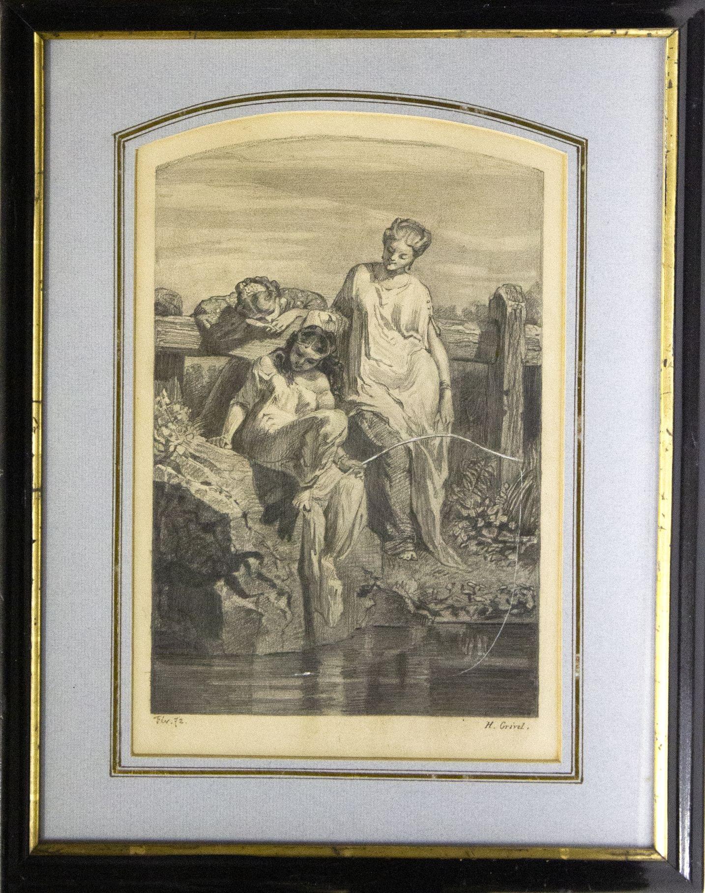 Jeunes femmes au bord de l'étang, mine de plomb sur papier, 25x16 cm