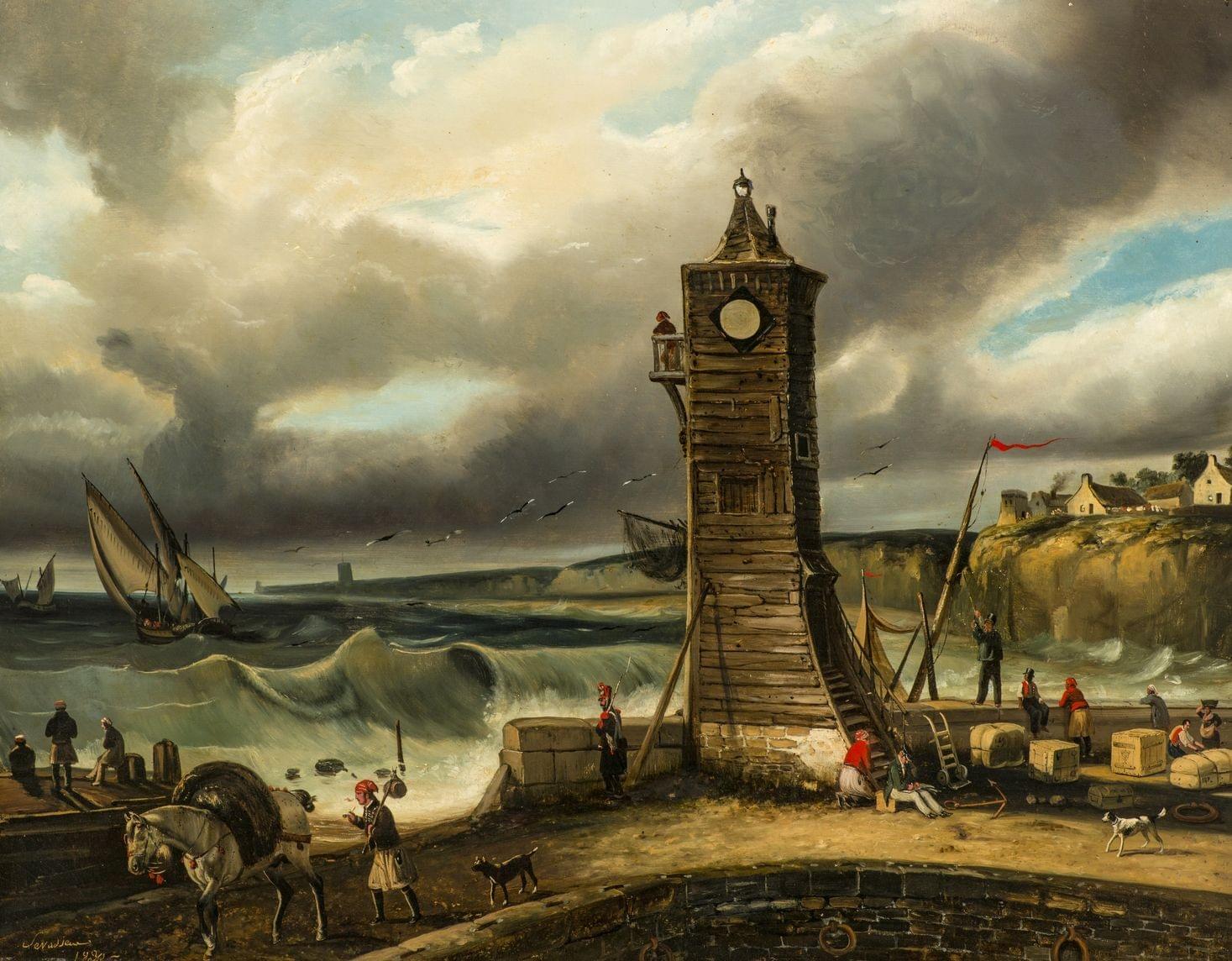 Tempête sur les côtes normandes, huile sur toile, signée et datée 1830, 71x91 cm