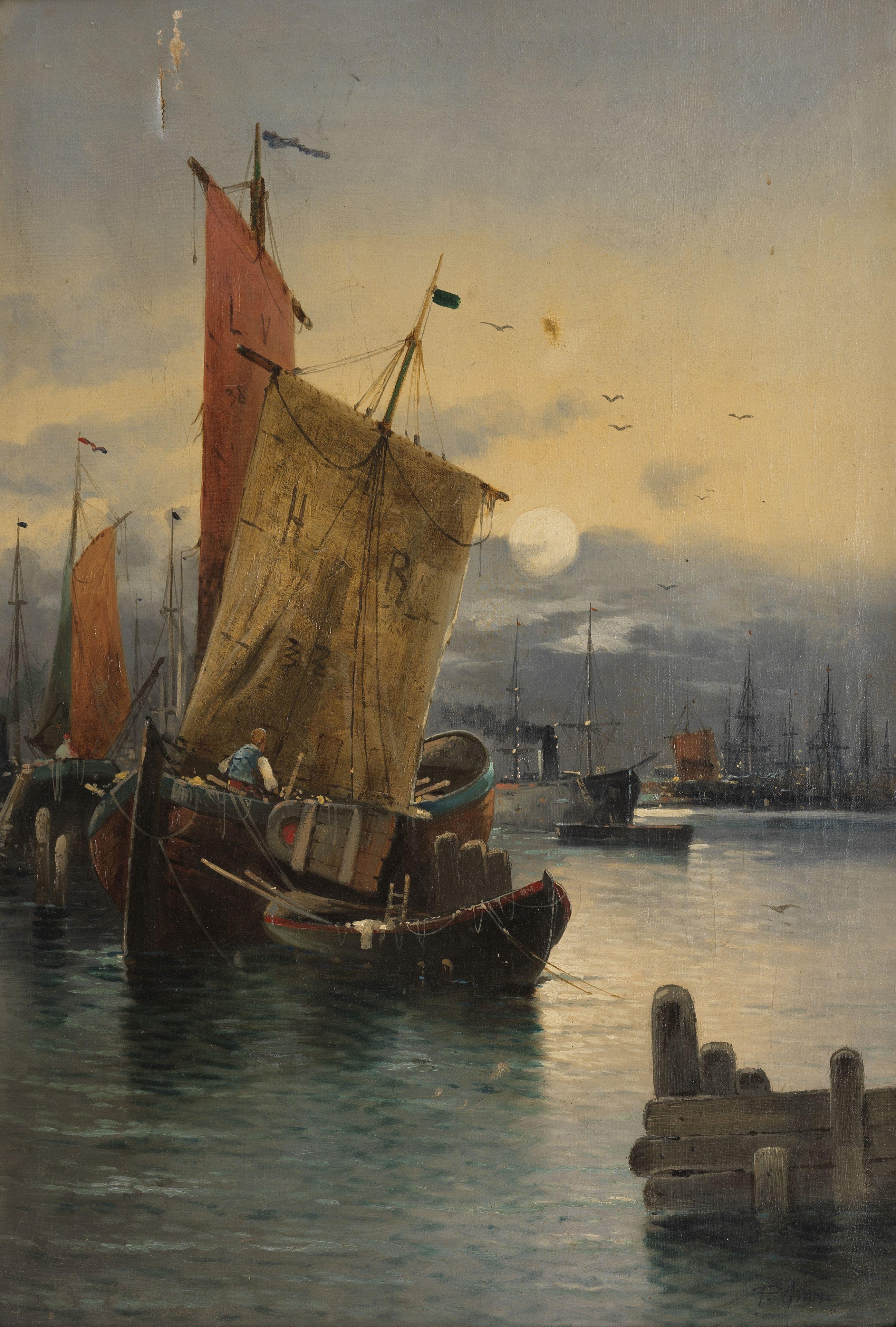 Bateaux, huile sur toile, signée, 68x47 cm