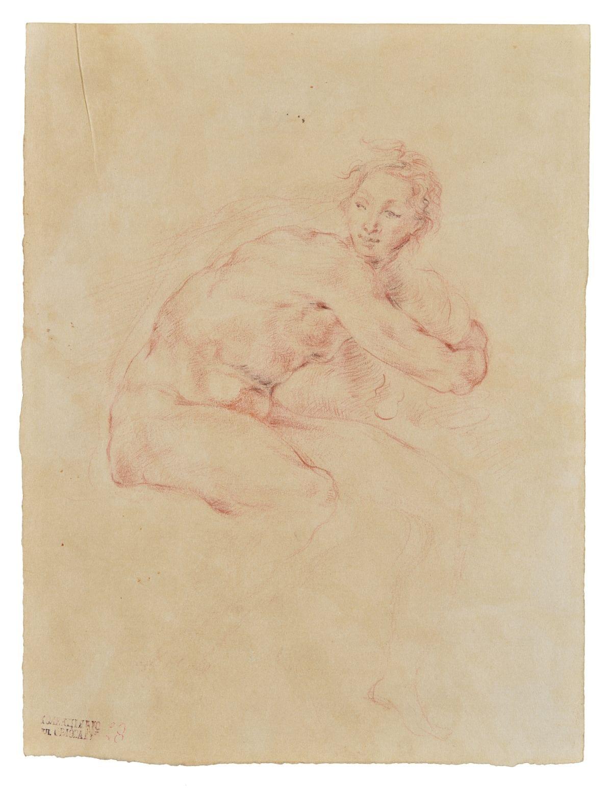 Etude d'homme, sanguine et fusain sur papier, cachet de la Collection Prince Orlov no 28, 30x22,5 cm