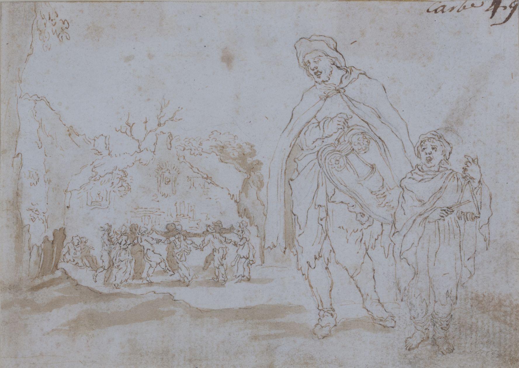 Musiciens à la fête du village, encre sur papier, 9x14 cm
