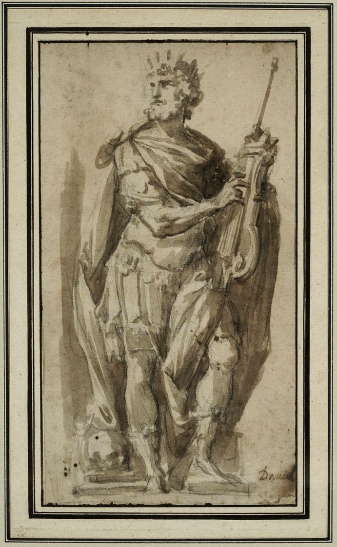 Le roi David, lavis d'encre sur papier, 27x15 cm