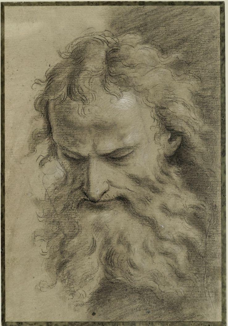 Etude de vieillard, fusain et craie blanche, 31x21 cm
