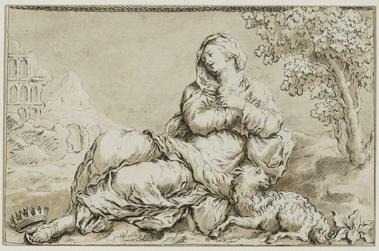 Mère épleurée, gravure rehaussée de lavis, 8x12 cm