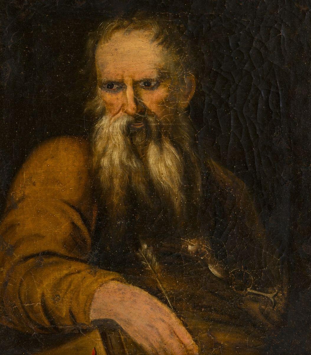 Portrait d'évangéliste ou Saint-Jérome, huile sur toile, 34x30 cm