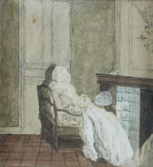 Portrait de Mme Lullin à Lancy, aquarelle et mine de plomb sur papier, 10x9 cm