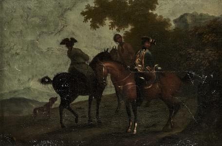 La halte des cavaliers, paire d'huiles sur toile, 20x30 cm