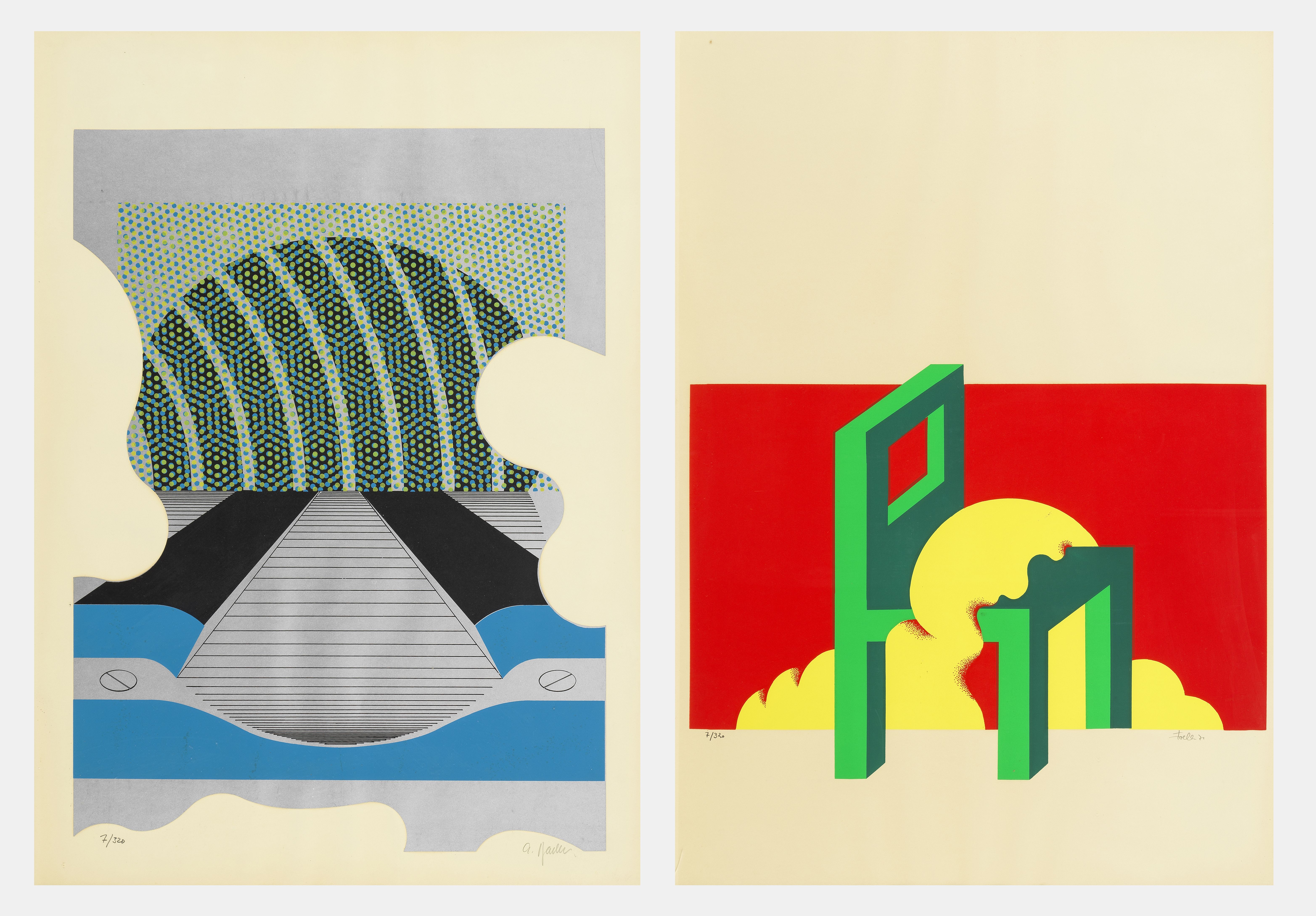 Composition abstaite, estampe, numérotée 4/5 et datée 72, 34x25...