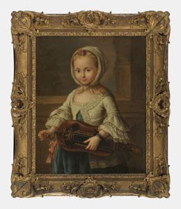 Jeune fille jouant de la vielle, huile sur toile, 72x58 cm
