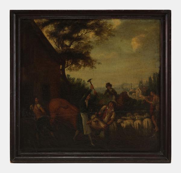 Un bœuf qu'on abat, huile sur toile, 81x80 cm