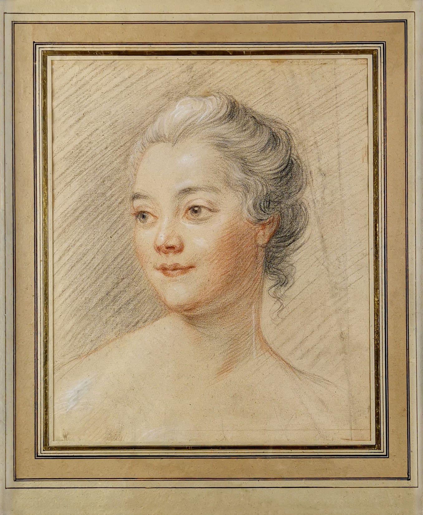 Portrait de femme, fusain, craie blanche et sanguine, 30x25 cm