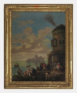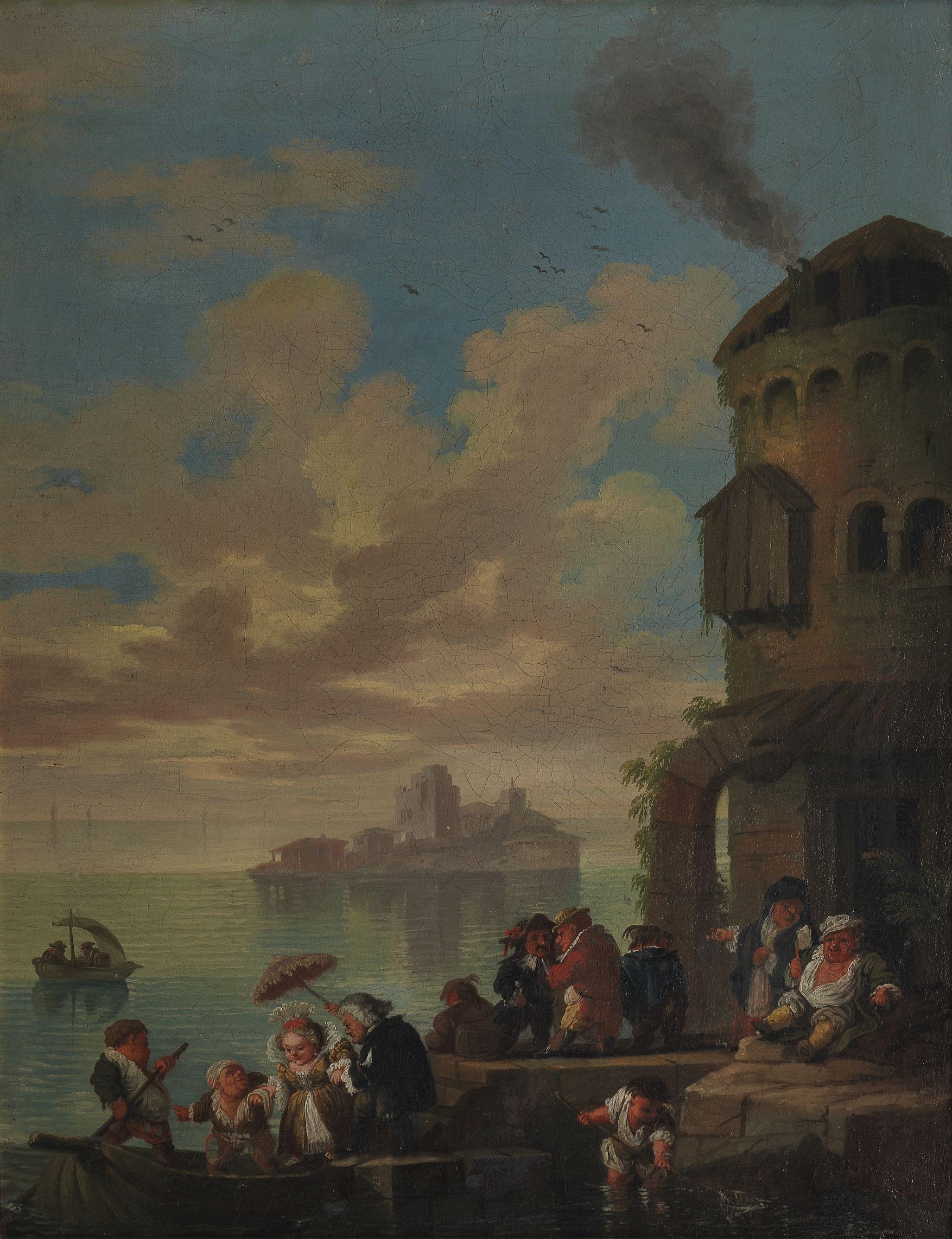 Paysage de bord de mer avec des nains, huile sur toile, 71x54 cm. Provenance: Sophocles Venizelos (1894-1964), premier ministre de Grèce 1944-1961